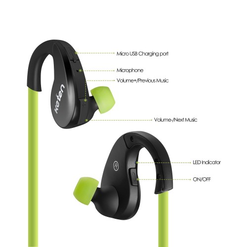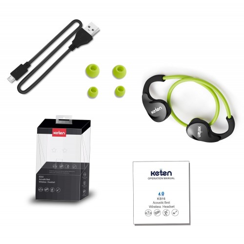 Keten KB16 V4.0 Sport Bluetooth Headphones Stereo Wireless Sweatproof Earbuds Green